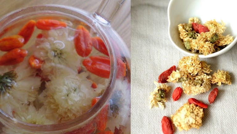 Mettre tous les ingrédients dans une théière et y verser de l’eau bouillante. Laisser infuser quelques minutes. On peut rajouter deux ou trois fois de l’eau bouillante sur le mélange, en laissant infuser plus longtemps, les fois suivantes. Il est recommandé de manger les baies de Goji et la jujube, mais pas les fleurs de chrysanthèmes.